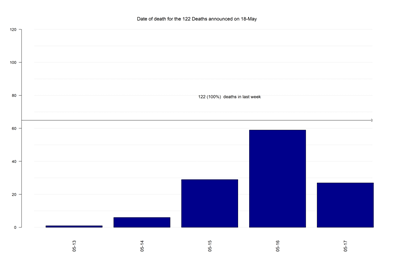 “Today’s reported figure is 122 deaths in hospitals in England. All of these deaths occurred in the last 7 days. In the last two days we have not seen reported deaths from greater than 7 days ago.
