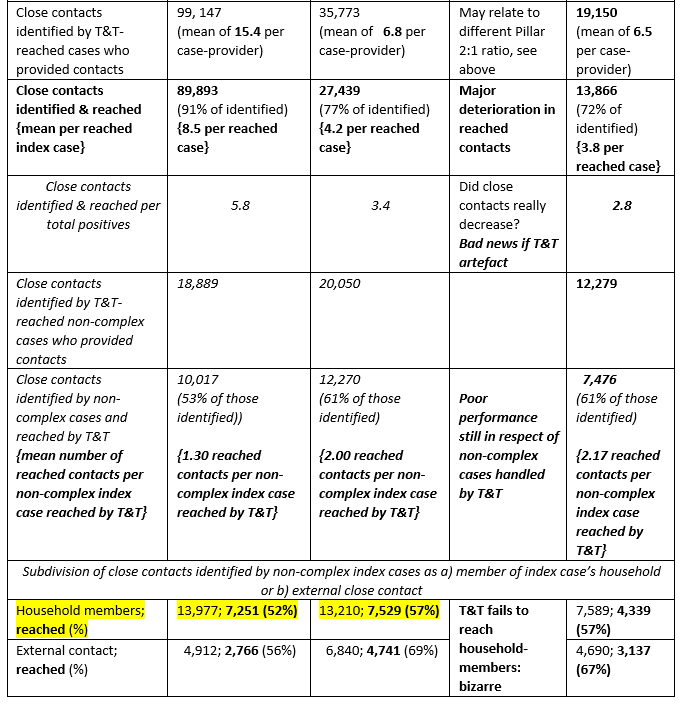 What’s still missing: Test & Trace’s poor performance in reaching identified close contacts who are members of the household of a non-complex index case is extraordinary and needed explanation. Explanation awaited still.